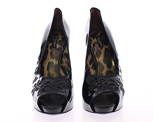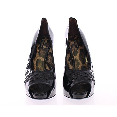 Dolce Gabbana Gorgeous, brand new with tags 100% Authentic Dolce Gabbana Black Patent Leather Open Toe Platform Pumps shoes. This items comes from the exclusive MainLine Dolce Gabbana collection. Modell: Open Toe Platform Pumps Color: Black Material: 100% Leather Sole: Leather Leopard print inner lining Logo details Very high quality and comfort