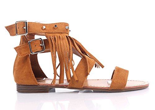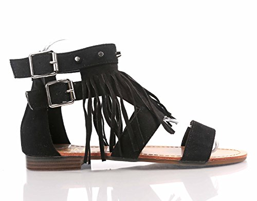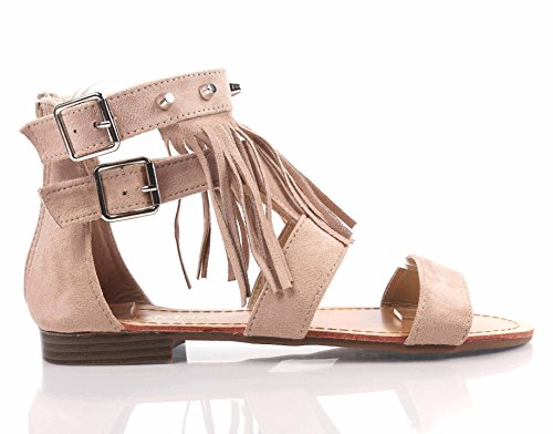 Women Open Toe Sandals Fringe Ruffle Design Back Shaft Zipper Adjustable Buckle Ankle Strap Gla...