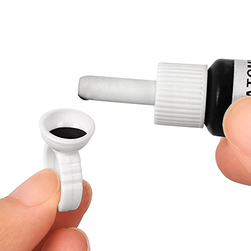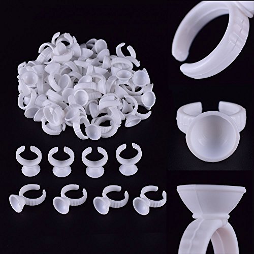 The best to use for holding glue, pigment, ink, remover or lash primer during application of eyelash extensions and tattoo applications; Easy to clean and reuse again and makes the eyelash application much easier; Small size. The cup diameter is 0.5'' / 1.3 cm , and the finger round diameter is 0.7'' / 1.7cm ; Simply put the ring on your less dominant hand& dispense a drop into the well. Package includes: 100 Pcs disposable makeup glue rings capsFeature