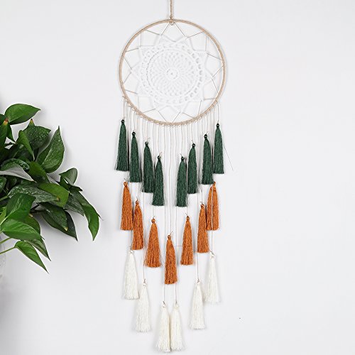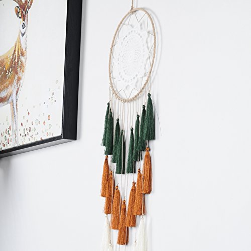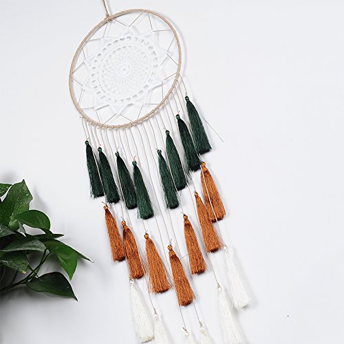 Artilady 8inch handmade tassel dream catcher wall decoration (green mix)