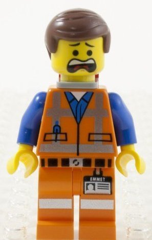 -. Title : L.E.G.O Movie Emmet Minifigure with double-sided face (smirk + bewildered) and Piece of Resistance