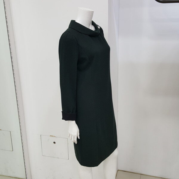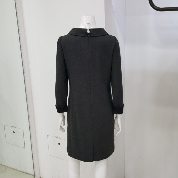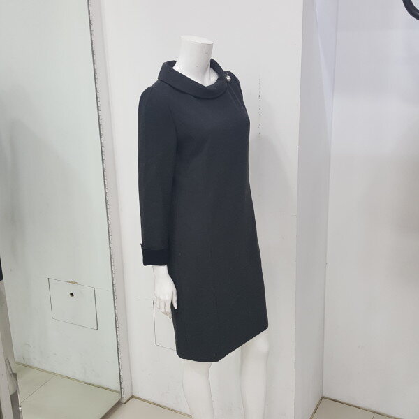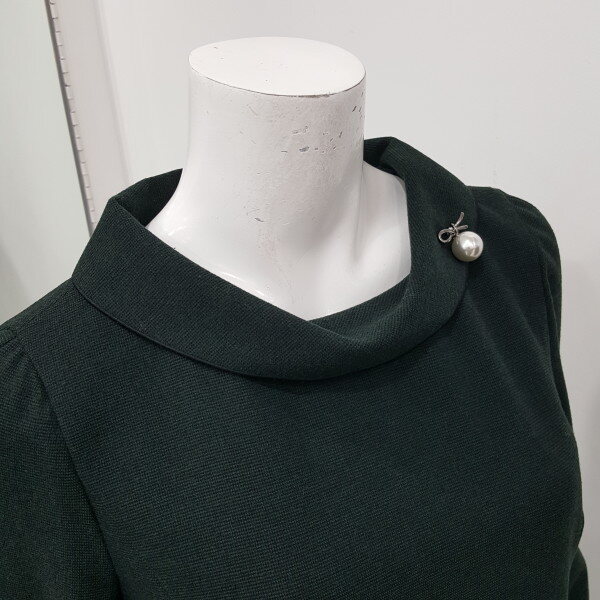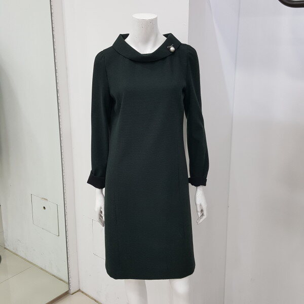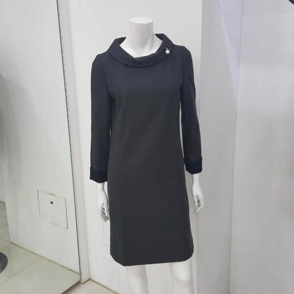 네크라인까지 살짝 올라오는 원피스입니다. 네크라인에 진주로 포인트로 줘서 고급스러운 디자인입니다.