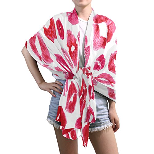 (ALAZA)/Accessories/Cold Weather Accessories/DIRECT FROM USA/ALAZA Vintage Lip Kiss Chiffon Silk Long Scarf Shawl Wrap