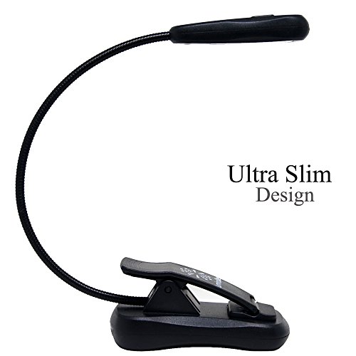 - UPGRADED version!!! 250% battery life, read for up to 24 HOURS without charging at normal brightness level. 20% less weight (only 2.15 oz), WEIGHTLESS for clipping on your book. 30% SLIMMER & COMPACT, even not aware of its existence except the comfortable soft light. 3 TIMES of lighting area than the old version, light up 2 full pages, let darkness no where to hide. Advanced new power-saving LEDs emitting soft and defused light perfectly for EYE PROTECTION reading.