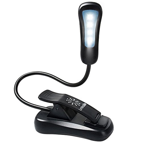 LuminoLite Rechargeable Extra-Bright 4 LED Book Light, Easy Clip On Reading Light, UL Certified AC Charger & USB Cable Included, 2 Brightness Settings, Soft Padded Clamp. Perfect for Bookworms
