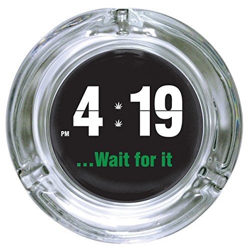 ICUP Stonerware - "… 4:19. Wait For It" Hemp Humor Themed Comedy Round Clear Glass Ashtray