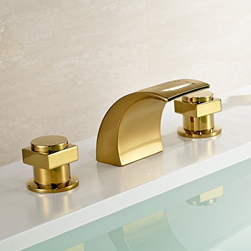 -. Title : Rozin® Gold Polished Waterfall Widespread Bathroom Basin Faucet with LED Light