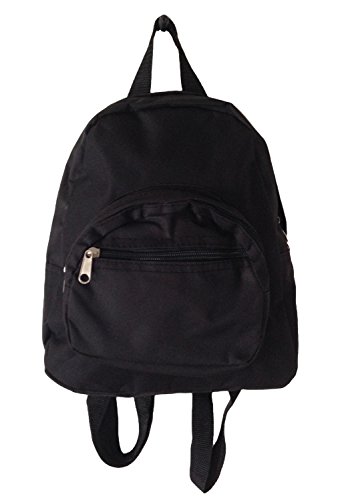 Mini Backpack Purse 11-inch, Zipper Front Pockets Teen Child (Solid Black)