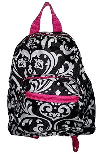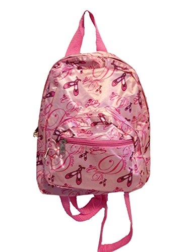 Mini Black Nylon Backpack with Hot Pink Trim...Ballet Shoe Print...Zipper Main Enclosure with 2 Exterior Zipper Pockets - Adjustable Shoulder Straps...11" tall x 9" wide x 3.5" deep...Great for Dance Class or Recitals!