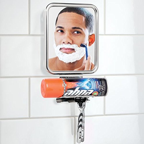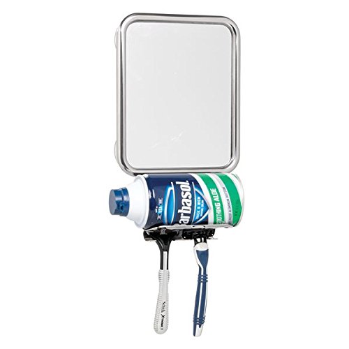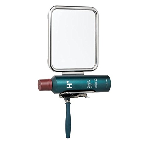 Studio : MetroDecor Publisher : MetroDecor Product Description Get a close shave every time with the Suction Shower Mirror from mDesign. The mirror strongly adheres to smooth surfaces, like shower walls and stays in place with four strong suction cups. A curved shelf and two hooks hold shaving cream and two razors, so you'll always have what you need at your fingertips. 0