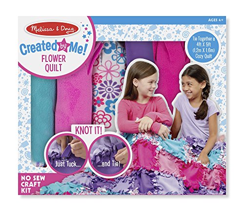Knot-together no-sew fleece quilt craft kit with flower pattern and coordinating colors