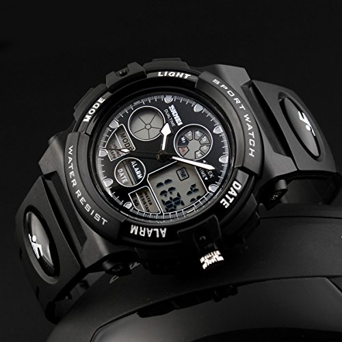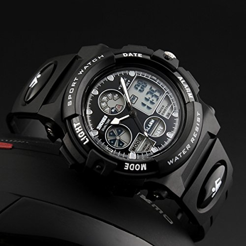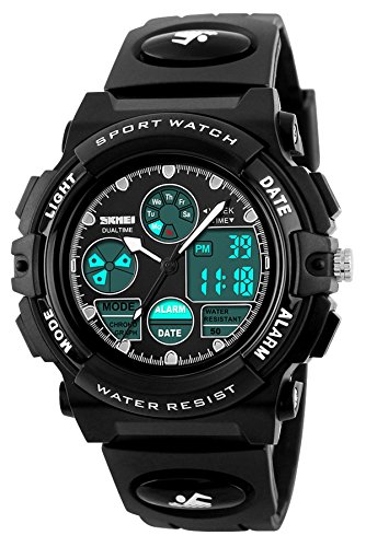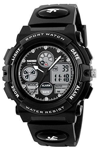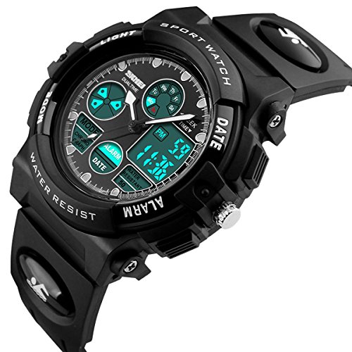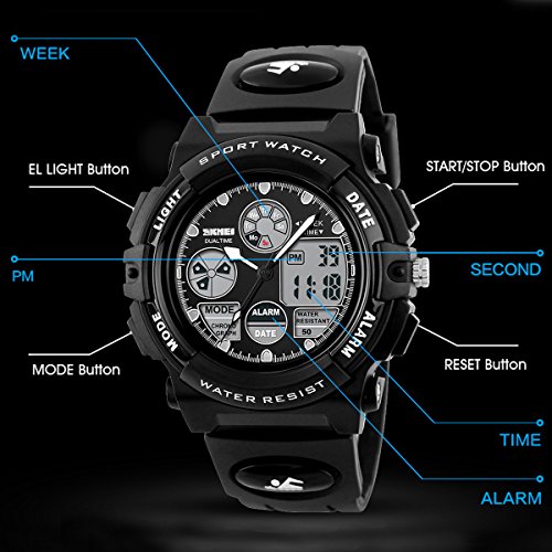 -. Title : Skmei Kids Watches Boys Digital Analog Waterproof 5ATM Dual Time Zone Sports Outdoor LED Electronic Wristwatches Black