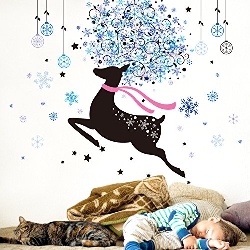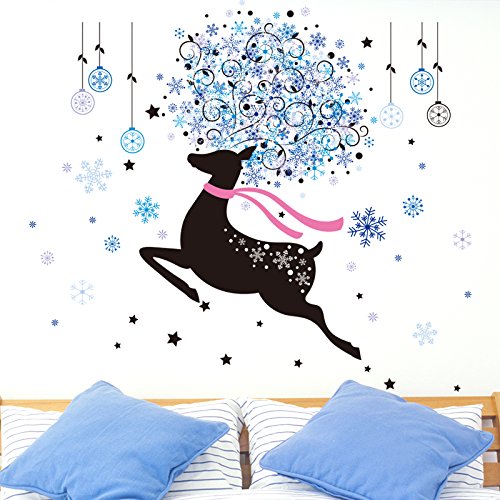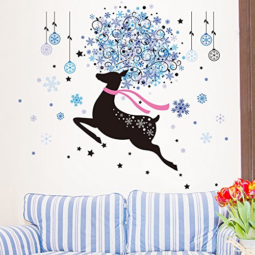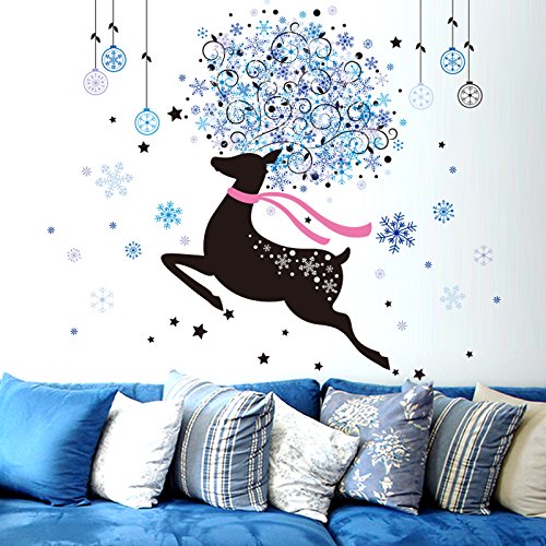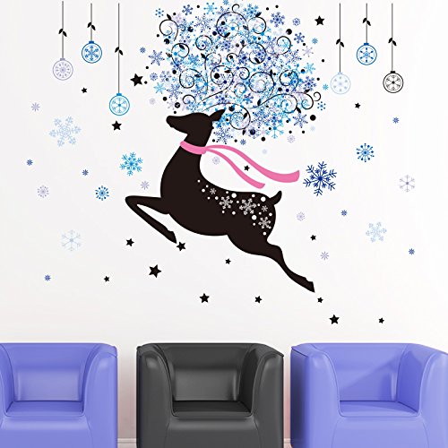 Christmas Window Decal Stickers Decorations Santa Claus Shop Glass Door Home Wall Art Decals (Flying Deer)