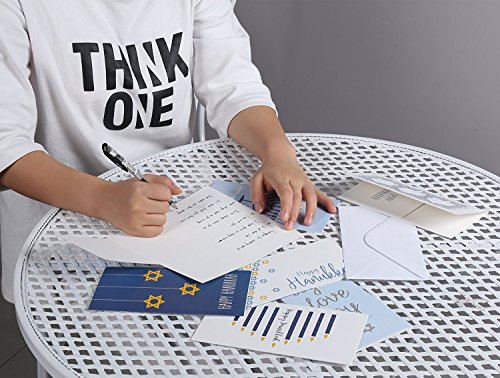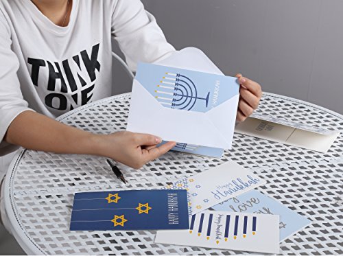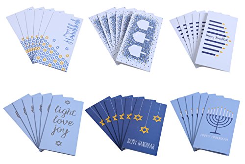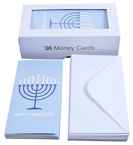 Hanukkah Greeting Cards - Money & Gift Card Holders - Jewish Designer Holiday Chanukah & Celebration Cards - 6 Designs - 36 Envelopes Included 3.5 x 7.25 Inches
