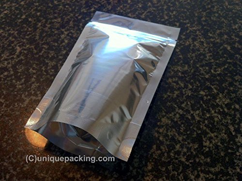 25 Pcs 5x8 Stand Up Zipper Pouches 4 Mil Freezer Bags (NFSUP-B) 4 to 16 Oz. SILVER-SILVER