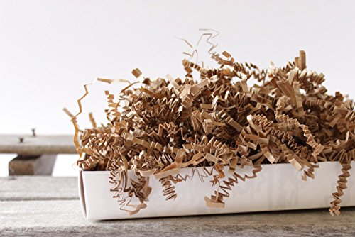 Our Natural Brown Kraft Crinkle Cut Eco-Spring Fill takes up more space so you can use less in your gift baskets and boxes. Contains 100% recycled paper. Accordion shaped shred, which expands,is perfect for heavier weight gift basket products. . Crinkle Cut is a Trademark of Spring-Fill Industries, Inc. A 10 lb box of Fill measures 24 x 16 x 11". 0