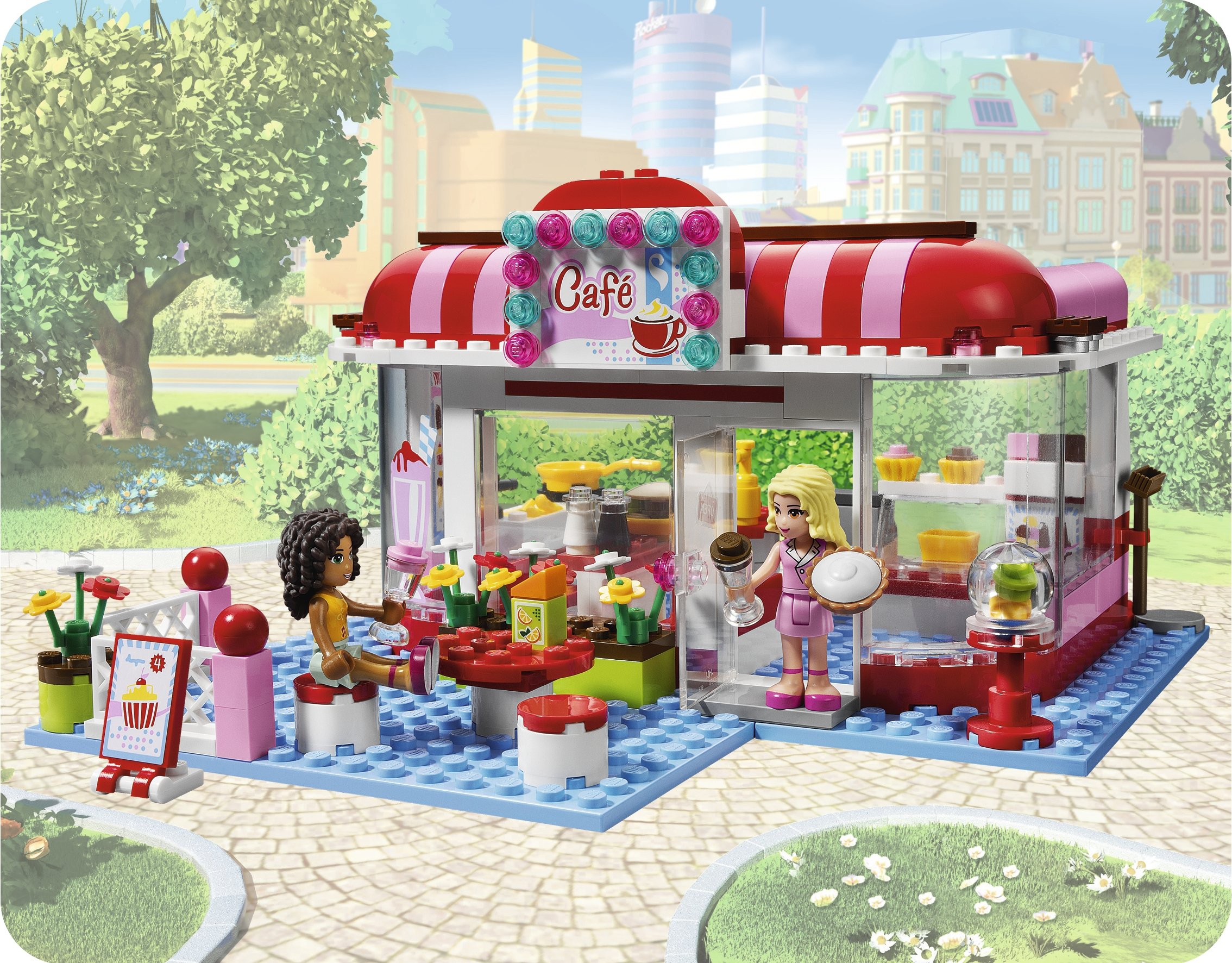 On a sunny day I will give milkshake outside! If you ordered a cupcake, you pay with LEGO block money! With Andrea and waitress' mary mini doll figure.