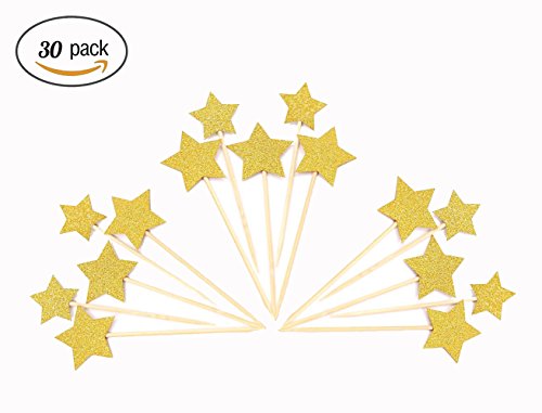 Gold Glitter Twinkle Little Star Cupcake Toppers DIY 30 Pcs