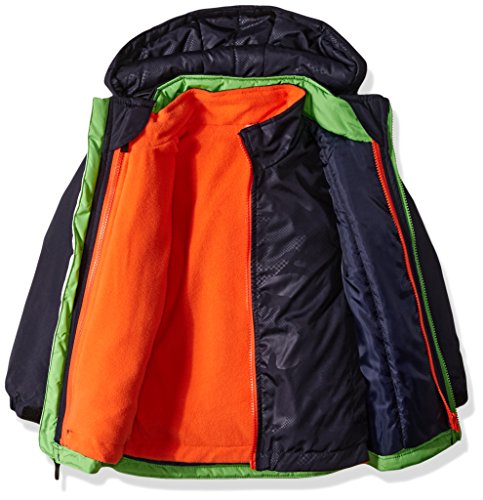 Color blocked systems jacket with hood and contrast lining