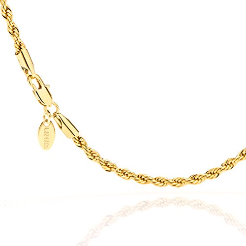 What makes it better?20mls of 24 karat gold in each chain - 10 times more gold than in the cheaper electroplate that changes color quickly. We only use 24k gold (THE PUREST form of gold) instead of 10k or 14k! No cheap base metals like steel, copper (turns green) or nickel (toxic). Our trade secret is in the special SEMI-PRECIOUS alloy of the best bonding metals we use to ensure the look of solid gold and its long life.