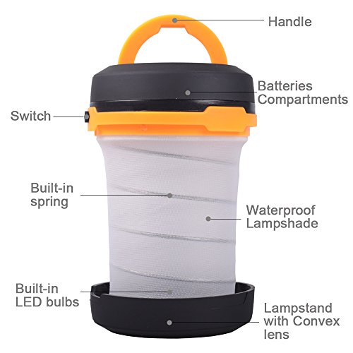 [Features durable ABS material with rubber oil sprayed on the surface] This camp lantern is engineered to be water resistant, making it ideal for use in rugged conditions like rainy weather; Built-in ring is easy to be hanged or carried, set it on the ground, in your tent, or hang it from a tree.