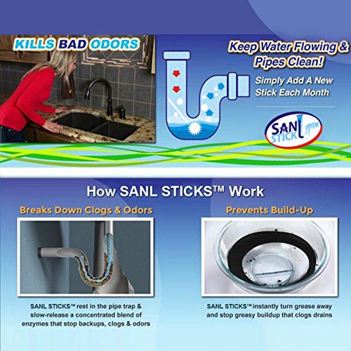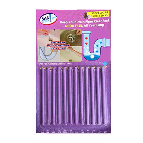 -. Feature : 100% septic safe and environmentally friendly. / Drain sticks eliminate embarrassing odors from drains and prevent clogged sinks / Includes 12 enzyme drain cleaner sticks total. round and only 6.3 inches long and 100 percent safe for plumbing and septic tanks with no toxic chemicals / The enzymes break down grease, fats, oils, and organic build up. / The smell is Fresh and there are four scents to Choose from: Oceans, Lavender,Orange and Lemon.