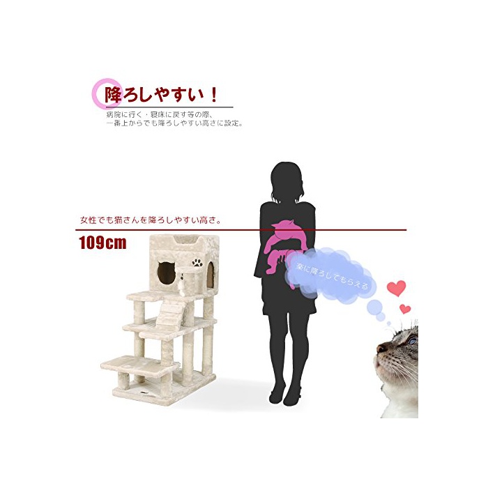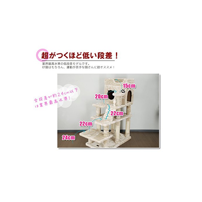 원본상품명:高?シニア運動苦手な猫さん向け 超が付くほど低段差で子猫も?? CW-T0809 109cm ネコタワ?キャットタワ?据え置き型 自立【?になる?いが無いと好評です】 もふもふ生地 1~2頭用 猫