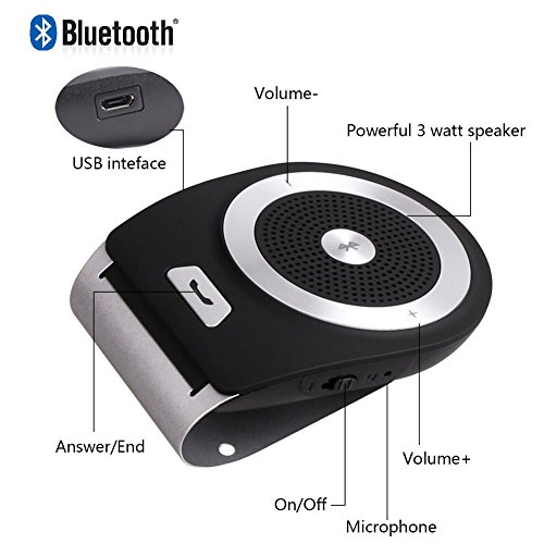 【Multifunction & Pair to 2 phones Simultaneously】 Bluetooth V4.1+A2DP,Design for transfer great sound of music, radio, GPS Navigation or any other type of audio from your Bluetooth device with HD sound, Build-in high sensitivity microphone with DSP noise cancellation technology to Improving Call Quality