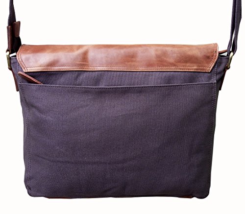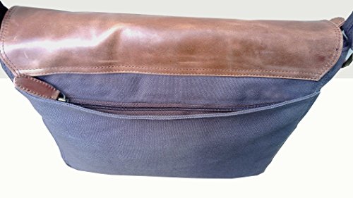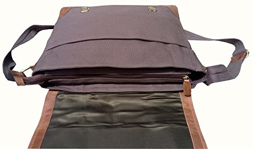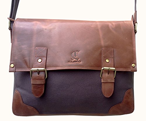 -. Title : Cuero 14" Leather Messenger Satchel Laptop Briefcase Leather Canvas Shoulder Messenger Bag