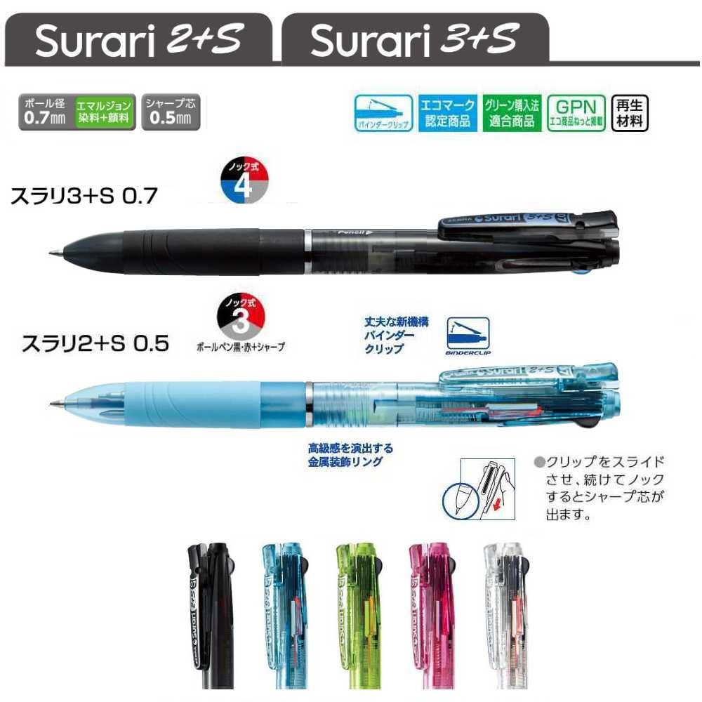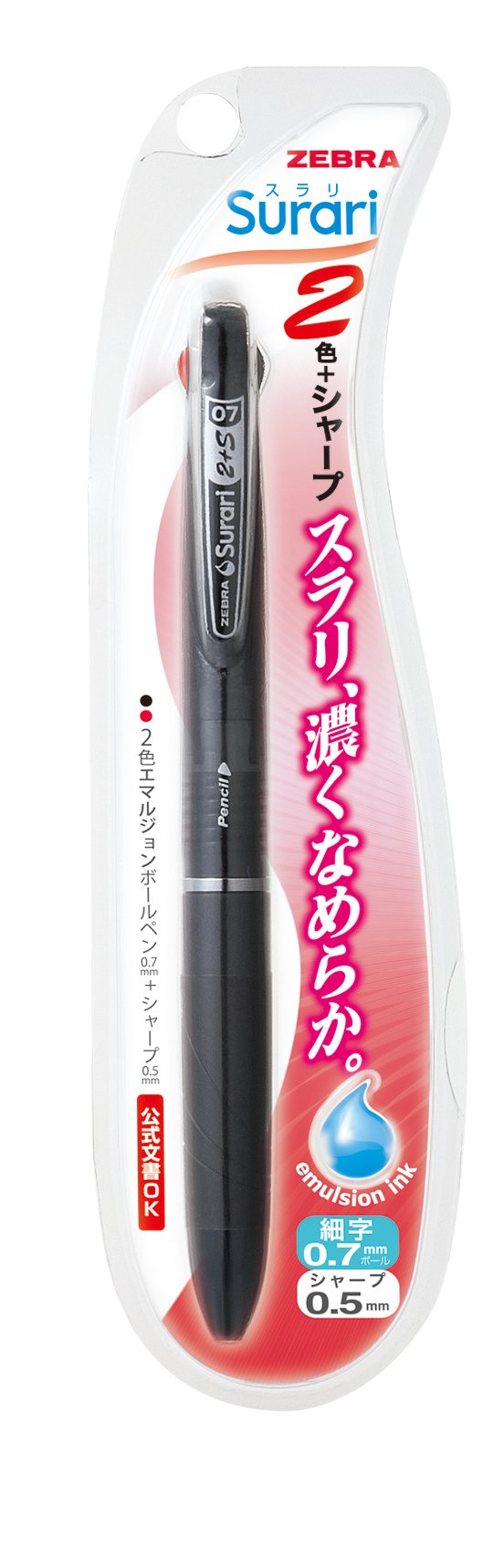 Zebra Multi Function Surari Red/Black Ink Ballpoint Pen 0.5mm Mechanical Pencil Black Body (B2SA11-BK)