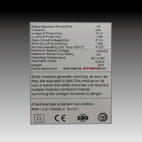【ソーラーパネル30W】