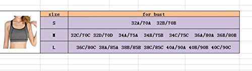 -. Feature : Material:100% Polyester.High quality sweatproof material; Professional sports bra for exercising and body building lover. / Ideal for everyday active lifestyle like Sports, Gym Exercise & Fitness, Yoga, Walking & jogging & Running, Cycling, Boxing, Bowling, Tenis, etc. / Size S: bust 32A/70A; 32B/70B / Size M: bust 32C/70C; 32D/70D; 34A/75A; 34B/75B; 34C/75C; 36A/80A; 36B/80B / Size L: bust 36C/80C; 38A/85A; 38B/85B; 38C/85C; 40A/90A; 40B/90B; 40C/90C