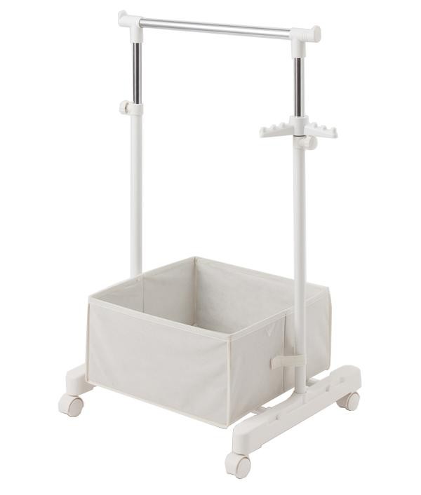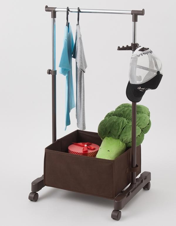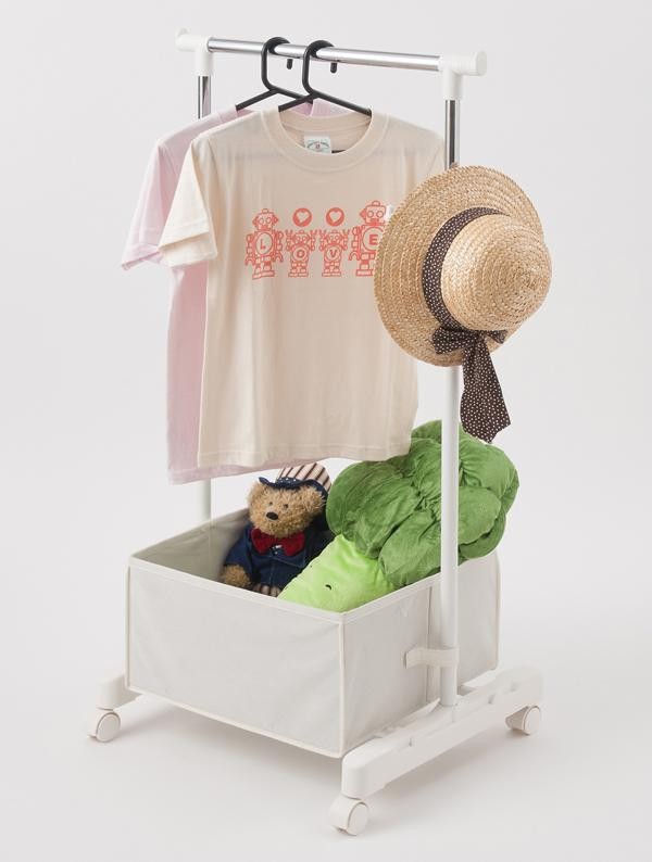| お子様の洋服や用品をすっきり収納できる子供用のパイプハンガーです。小物などを入れる収納できるボックスや、帽子などを掛ける回転パーツもついています。お片付けの練習にも♪高さ調節も可能でお洋服などに合わせて変更OK!! |