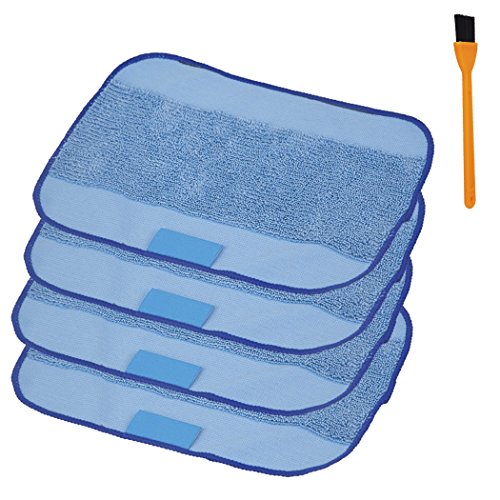 4-PACK WET MICROFIBER MOPPING CLOTHS WASHABLE&REUSABLE MOP PADS AND 1PCS FREE CLEANING BRUSH , HONGFA REPLACEMENT FOR IROBOT BRAAVA 380 380T 320 321 MINT 4200 4205 5200 5200C ROBOT