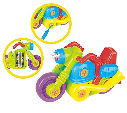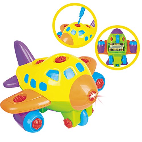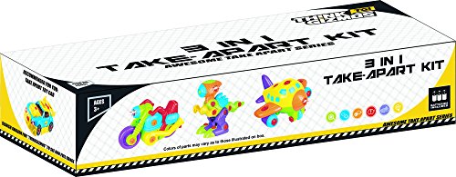 Kids will have hours of fun playing with the super 3 in 1 Take Apart Kit from the ThinkGizmos Awesome Take Apart Series. With not 1 but 3 different models being made from the 1 kit. This toddler toys set includes a Dinosaur toy, Motorbike and Plane. Each of the models features its own lights and sounds for added effect and a handy extra is that all parts are included in the box including all batteries so no need to go searching for batteries to fit. The models are made from non-toxic, recyclable ABS Plastic, however as this is a take-apart toy some smaller parts are included and may be a choking hazard so children under 3 years of age should be closely supervised whilst enjoying this toy. If you are looking for toys for a 3, 4, 5, or 6 year old boy or girl, look no further than this awesome building toy for toddlers. Not only can these toys for boys and girls be taken apart and rebuilt time and time again for hours of fun, they will be enhancing hand-eye coordination, fine motor skills and patience without them realising they are learning. The TG651 3 in 1 Take-Apart Kit is recommended for toddlers aged 3 + and is a 'ThinkGizmos' branded product.Feature