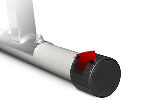 Adjustable chrome upright. Rolling end caps allow for easy transportation
