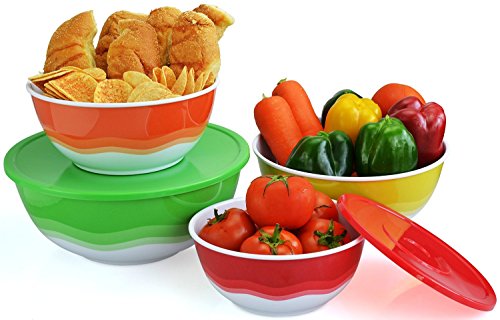Heavy-duty 4 mixing bowls nestle into one another even with the lids on for multipurpose and space-saving easy storage under the cabinet or on countertops.