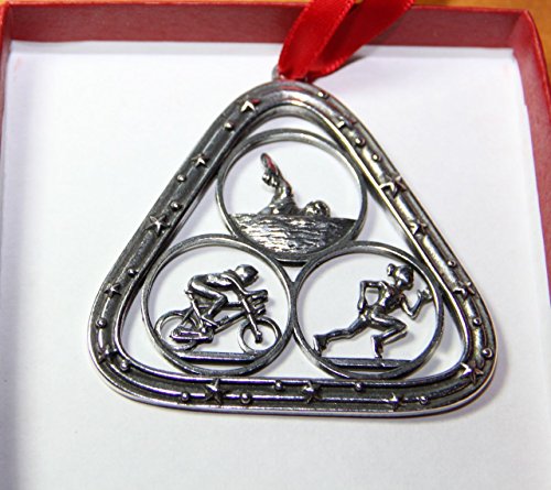 - UNIQUE TRIATHLON ORNAMENT FOR YOU OR THE FEMALE TRIATHLETE IN YOUR LIFE - HANDCRAFTED in the USA of the finest pewter