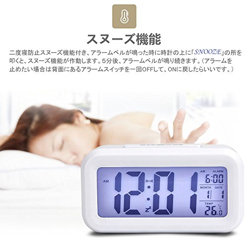 -. Title : デジタル 目覚まし時計 大音量 大きい文字 見やすい 多機能 置き時計 夜間バックライト自動点灯 温度計 湿度計 アラーム カレンター