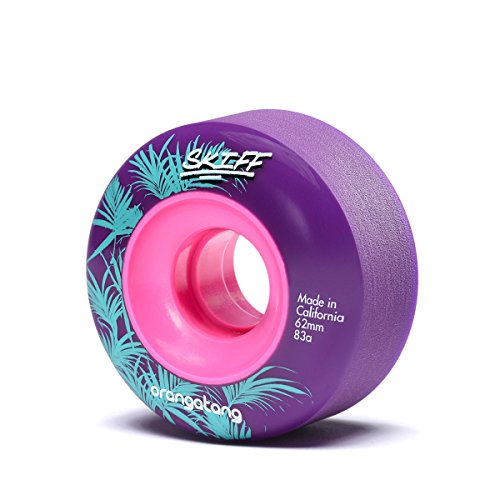 Studio : Orangatang Publisher : Orangatang Product Description I don't always ride small wheels. But when I do... they ride me. With a versatile stature, impeccable style, and a ready-to-rock attitude, the Skiff is the most interesting wheel in the world. Designed for all-terrain use, it is a utilitarian alternative to a traditional street wheel for riding faster, steeper, rougher, and longer. The pink AF core increases speed to blinding proportions and is specifically designed to annoy friends, family, and passersby. The 35x38mm core with a deep valley-shaped cross section keeps the rounded lips firmly supported, promoting smooth, consistent slides and even wear. The stone-ground contact patch ensures predictable and buttery slides right out of the box. The Skiff is poured in our tried-and-true Happy Thane for a balance of high speed, comfortable roll, reliable traction, and clean slides. No flamingos were harmed in the making of this wheel. Not for use in elevators. Purchase price includes set of 4 wheels. 0