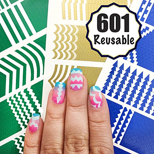 601 Reusable Nail Art Stencils Vinyl - 16 Different Shapes: Chevrons,Tribal,French Tip & More Adhesives Guides Patterns Designs in 3 Sheets Supplies Kit Stickers Tape foil decals Craft Perfect Gifts