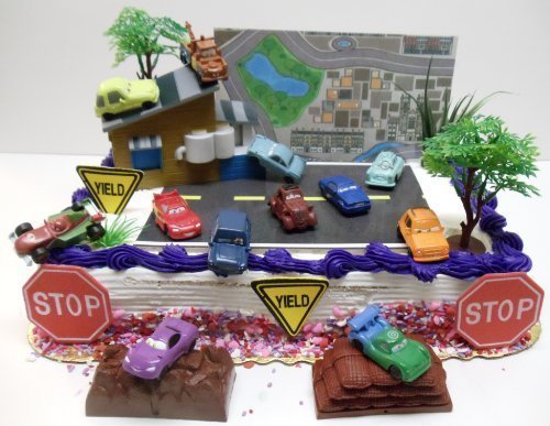 1.5" Cake Topper features Lightning McQueen, Tow Mater, Lemons, Francesco Bernoulli, Holley Shiftwell, Rod Redline, Uncle Topolino, Professor Z and Other Decorative Themed Pieces
