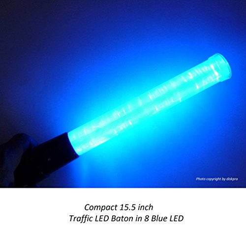 15.5 inch Blue LED Traffic Safety Baton Light, in 8 Blue color LED with 2 flashing modes (blinking and steady glow), using 2 C-size batteries (not included)