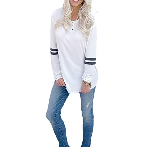 (Gillberry Women's Blouse)/Stationery Party Supplies/Party Supplies/DIRECT FROM USA/Gillberry Womens Cotton? Long Sleeve Round Neck Splice Shirt Blouse Tops T Shirt (L, White)