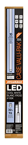 Sylvania Home Lighting 75126 LEDT8 Sylvania, 4ft LED T8, G13 Base, Efficient 17W, Cool White 4100K, 10 Piece