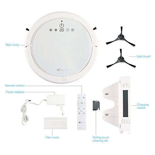 Package Includes: Robotic vacuum cleaner host, remote control (not including the AAA battery), charging station, AC power adapter, HEPA fliter, cleaning sets, Side brush*4pcs, manual. (We can provide 12 months free warranty)