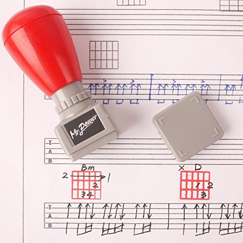 Mr.Power Guitar Chord Stamp Black Ink(3 Frets)/Ukulele(5 fret) DIY Mini Rubber Stamp(Red Ink)