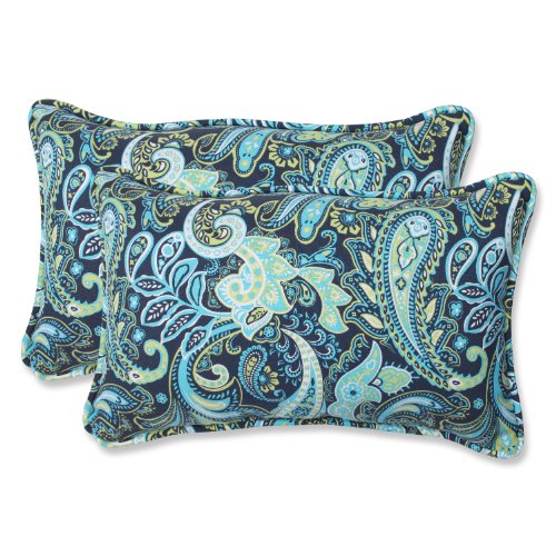 Pillow Perfect Outdoor Pretty Paisley Rectangular Throw Pillow, Navy, Set of 2