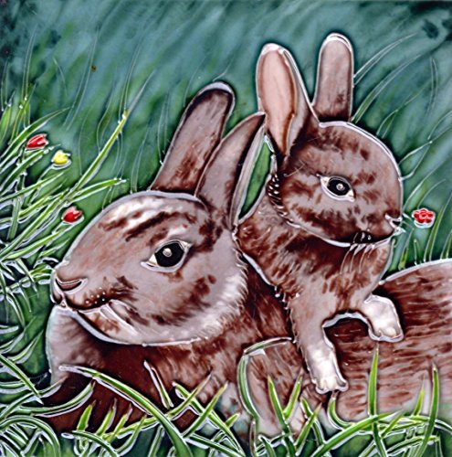 Continental Art Center BD-2352 Art Tile 8"X8" Art Tile-Mom Bunny & Her Baby