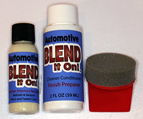 -. Brand : Automotive Interior Leather Refinish and Repair -. Feature : Formulated for your cars interior. Comes with 1 Oz Refinish, 2 Oz Conditioner and Sponge / Easy water clean up and will not rub off on clothing / Restore and Repair Worn and Faded Colors / Looks and feels like the original finish / Easy to Use and comes with all you need to do the job right -. Label : Quick Company -. Manufacturer : Quick Company -. Model : 1299887 -. MPN : 1299887 -. PackageQuantity : 3 -. PartNumber : 1299887 -. ProductGroup : Automotive Parts and Accessories -. ProductTypeName : AUTO_ACCESSORY -. Publisher : Quick Company -. Studio : Quick Company -. Title : Automotive Blend It On Leather Restore and Repair Touch-Up Kit / 1 Oz Refinish / 2 Oz Conditioner Cleaner / Sponge (Leather Repair Kit)